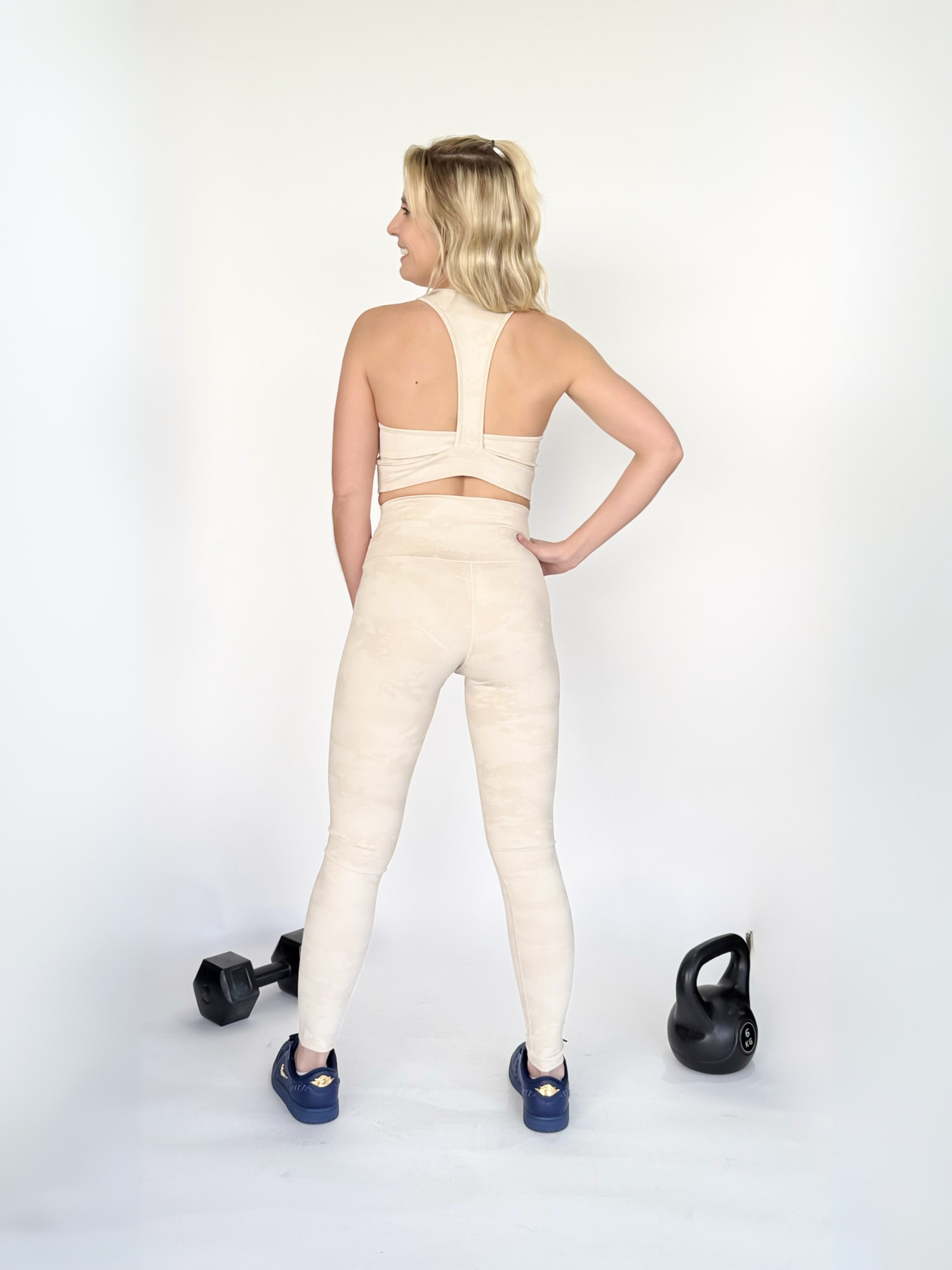 El conjunto de leggings y top cuentan con estampado jacquard, los que aportan un toque de sofisticación y originalidad a las prendas, siendo la opción perfecta para quienes buscan comodidad y estilo durante sus actividades.