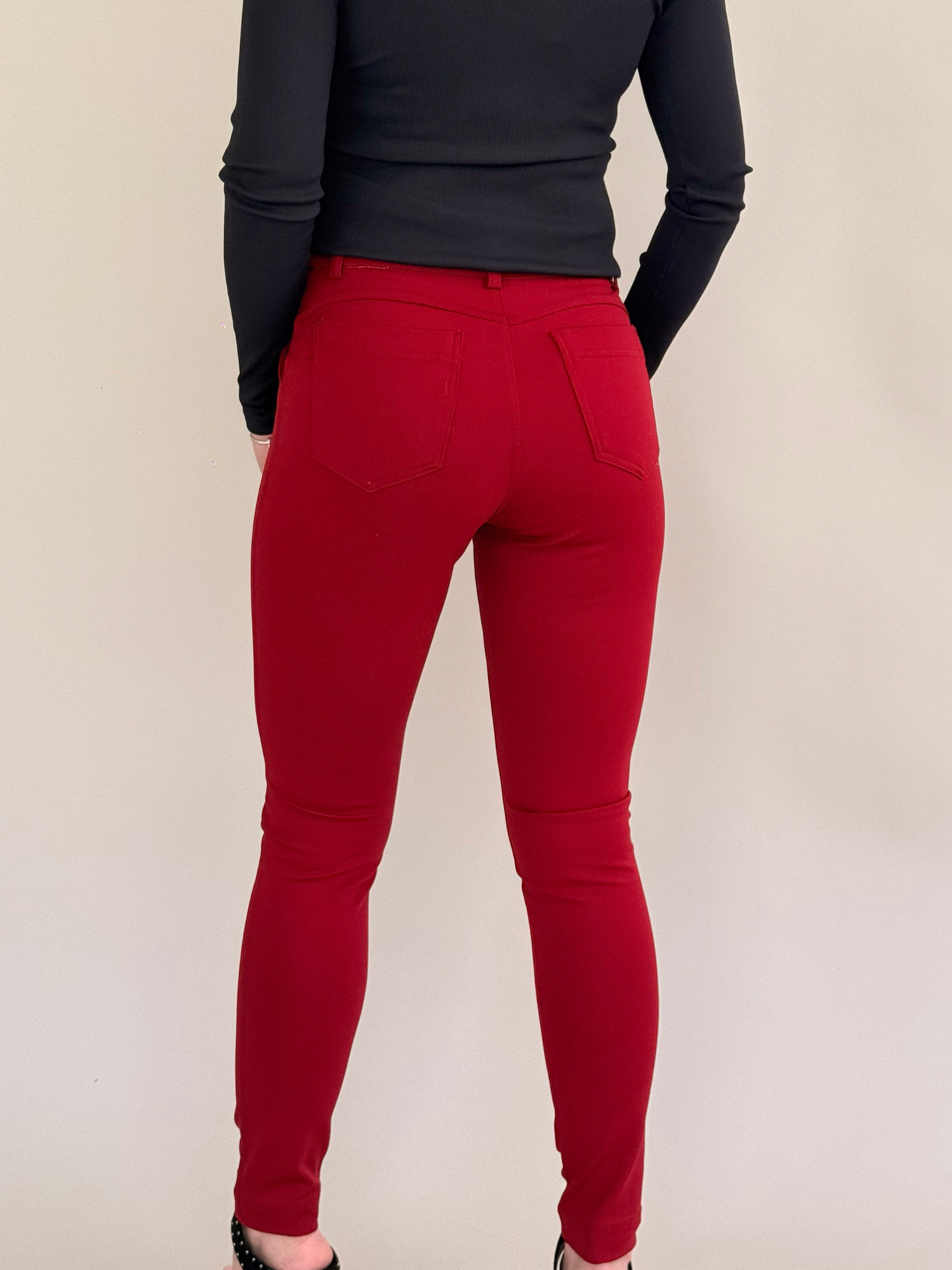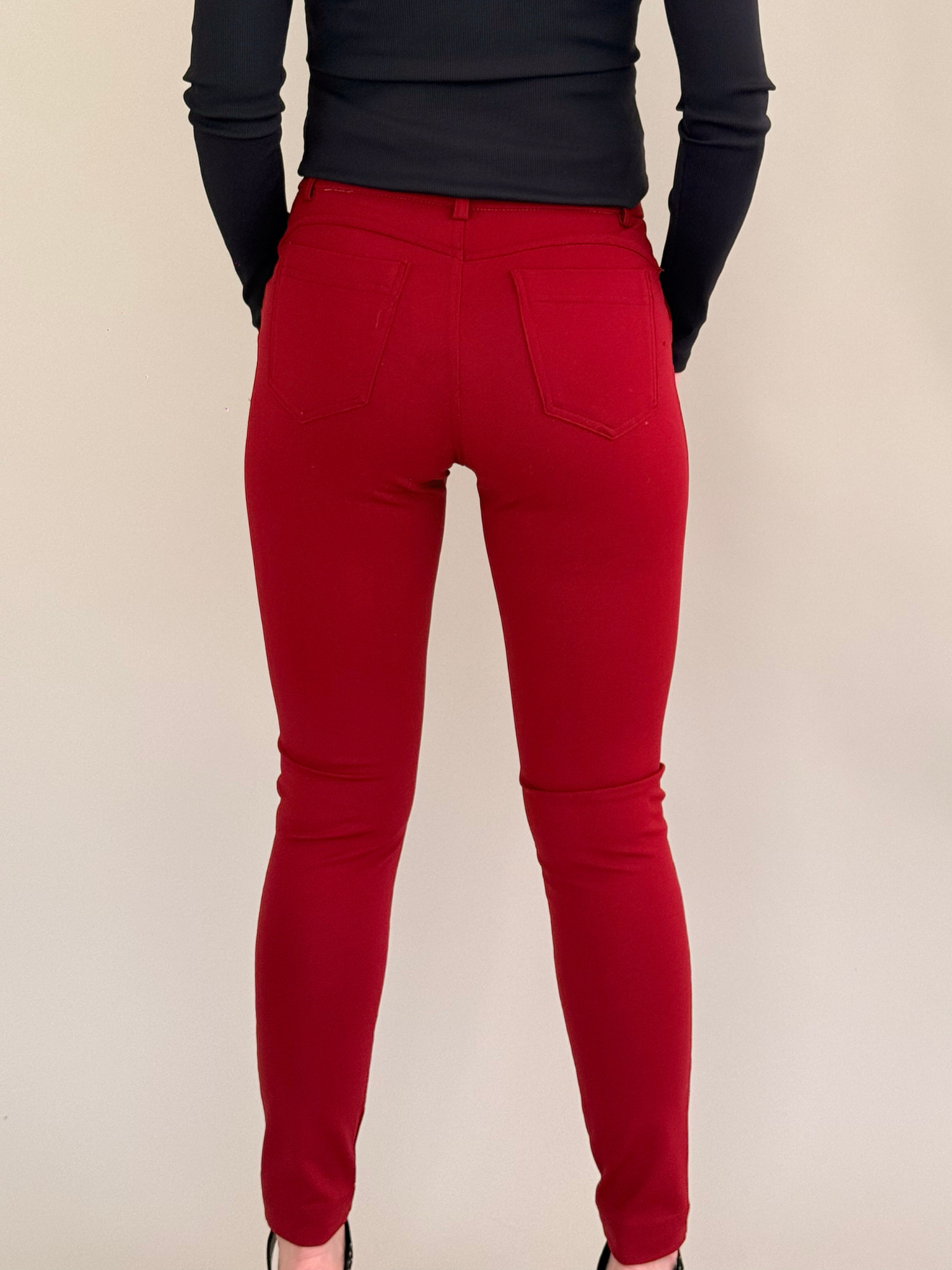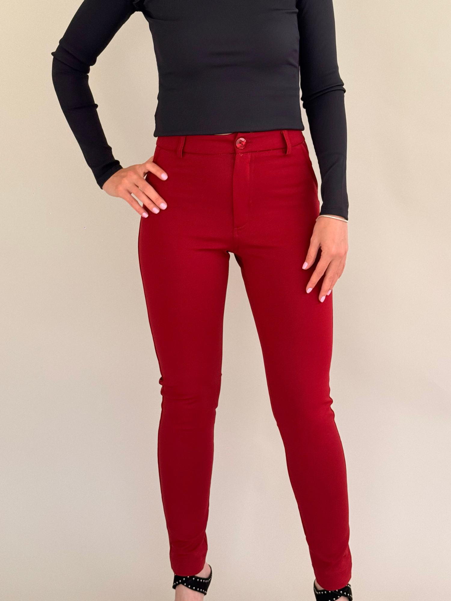 Pantalon Talisata tiro alto elasticado bolsillo trasero color burdeo
