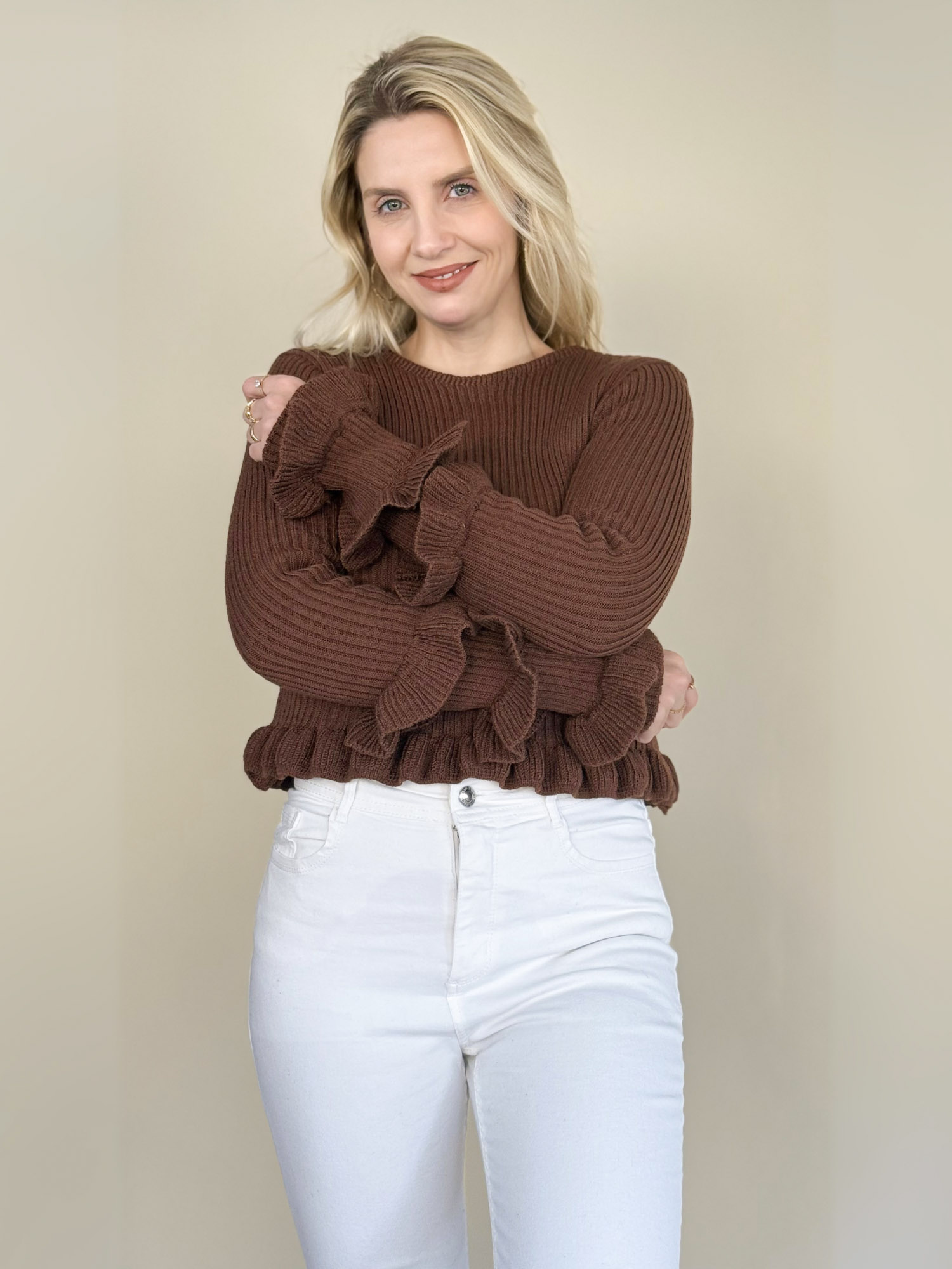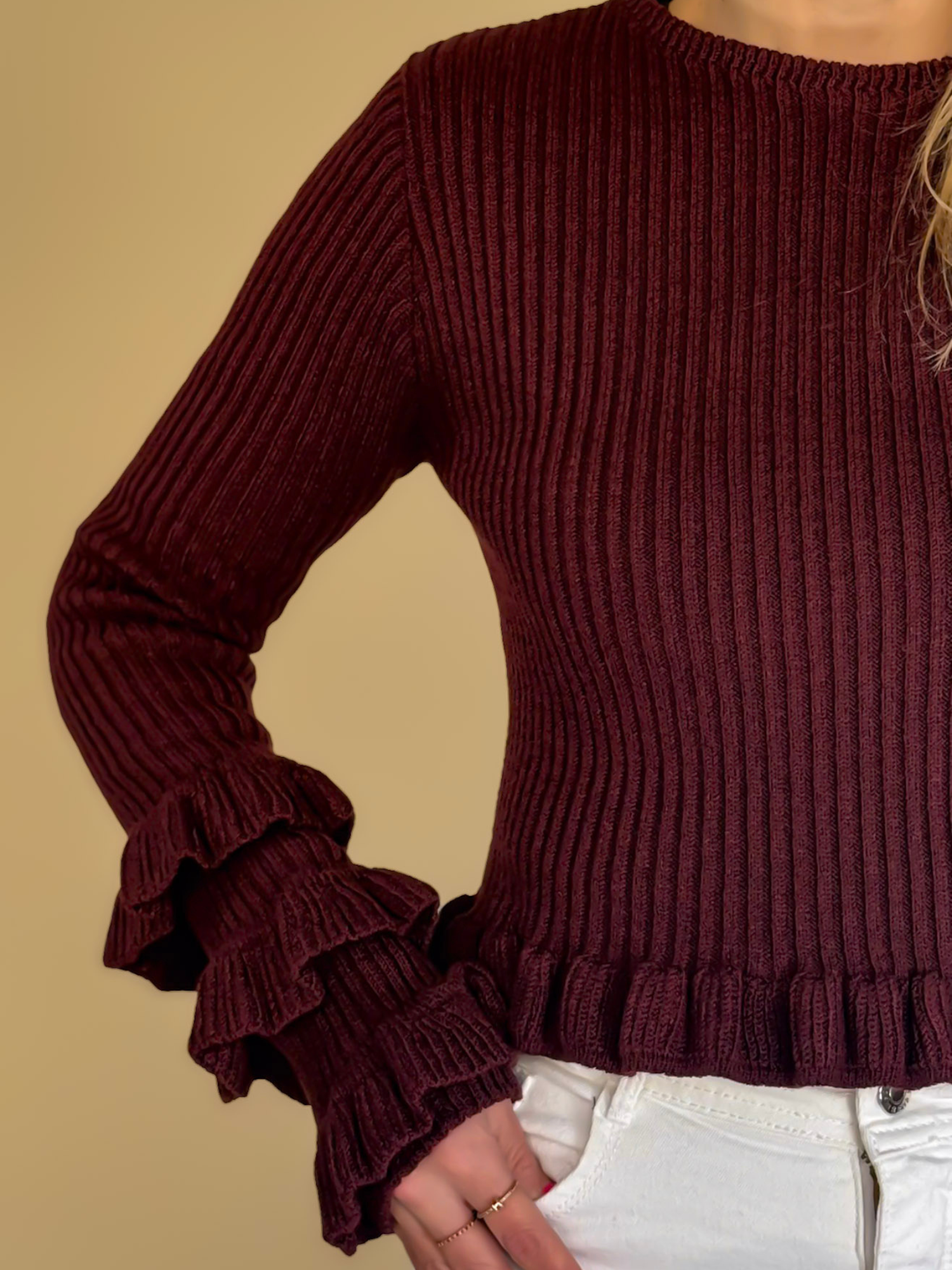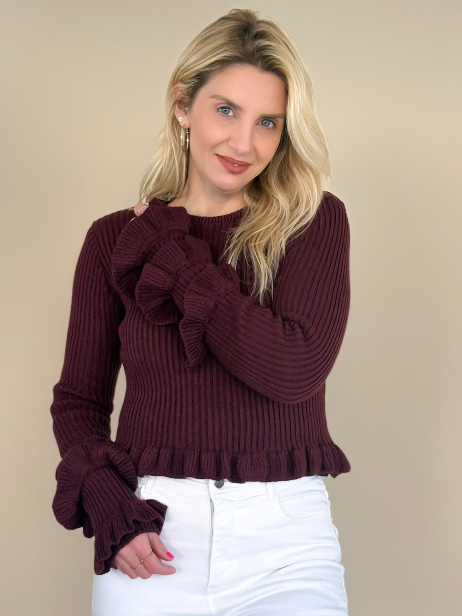 Sweater Cropped manga larga con vuelo es una prenda sofisticada que combina diseño contemporáneo con un aire femenino inconfundible. El corte cropped estiliza la silueta, mientras que el delicado vuelo en sus mangas y cintura aporta movimiento y distinción. Sus mangas largas equilibran el diseño, ofreciendo un look refinado y versátil para diversas ocasiones.
