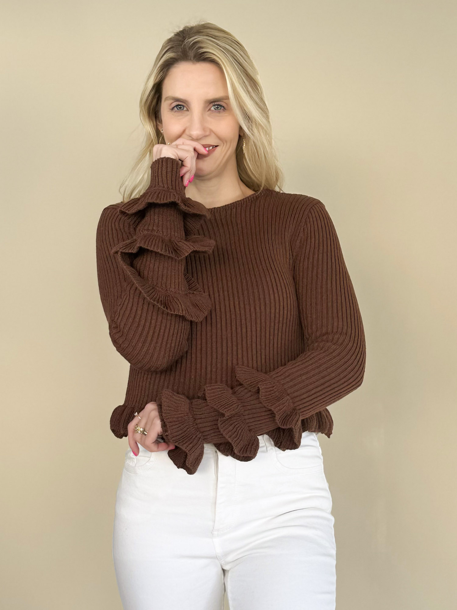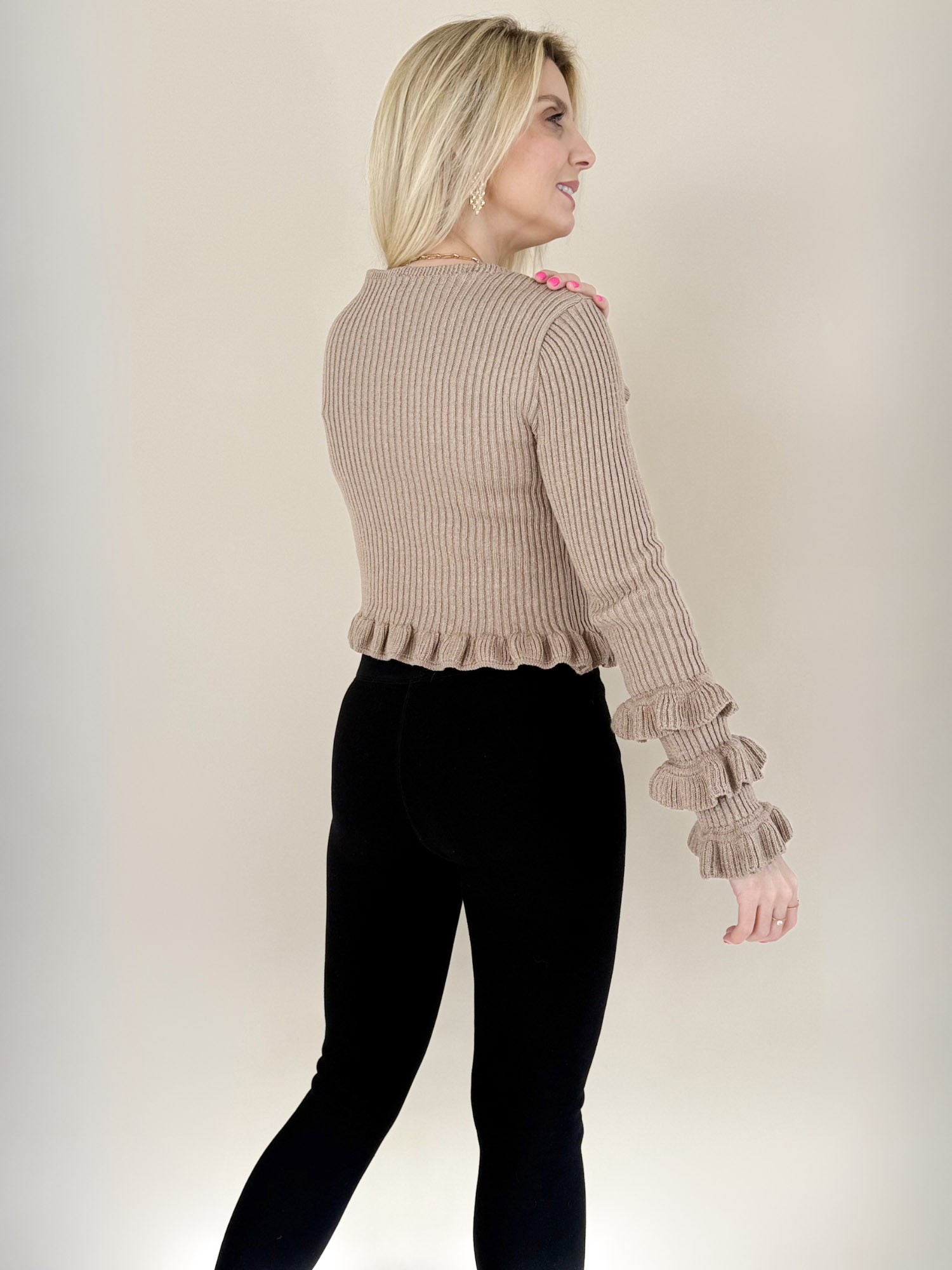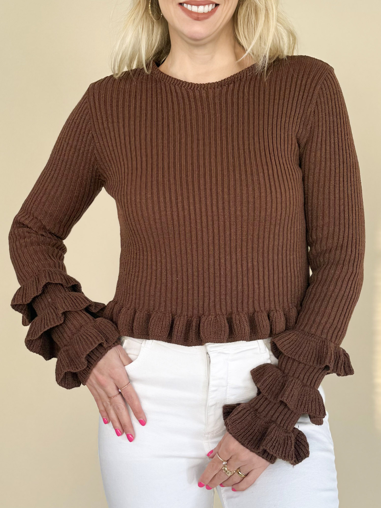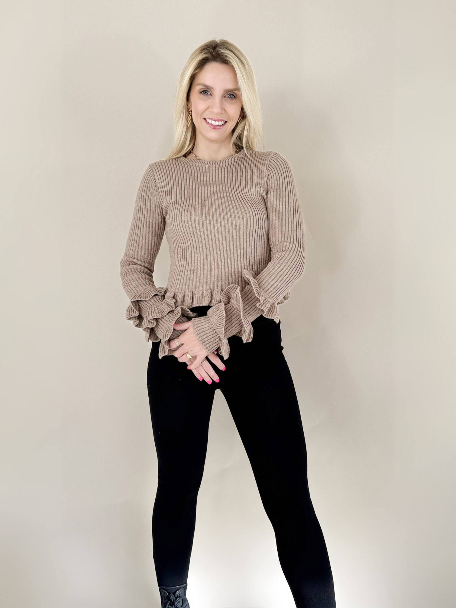 Sweater Cropped manga larga con vuelo es una prenda sofisticada que combina diseño contemporáneo con un aire femenino inconfundible. El corte cropped estiliza la silueta, mientras que el delicado vuelo en sus mangas y cintura aporta movimiento y distinción. Sus mangas largas equilibran el diseño, ofreciendo un look refinado y versátil para diversas ocasiones.