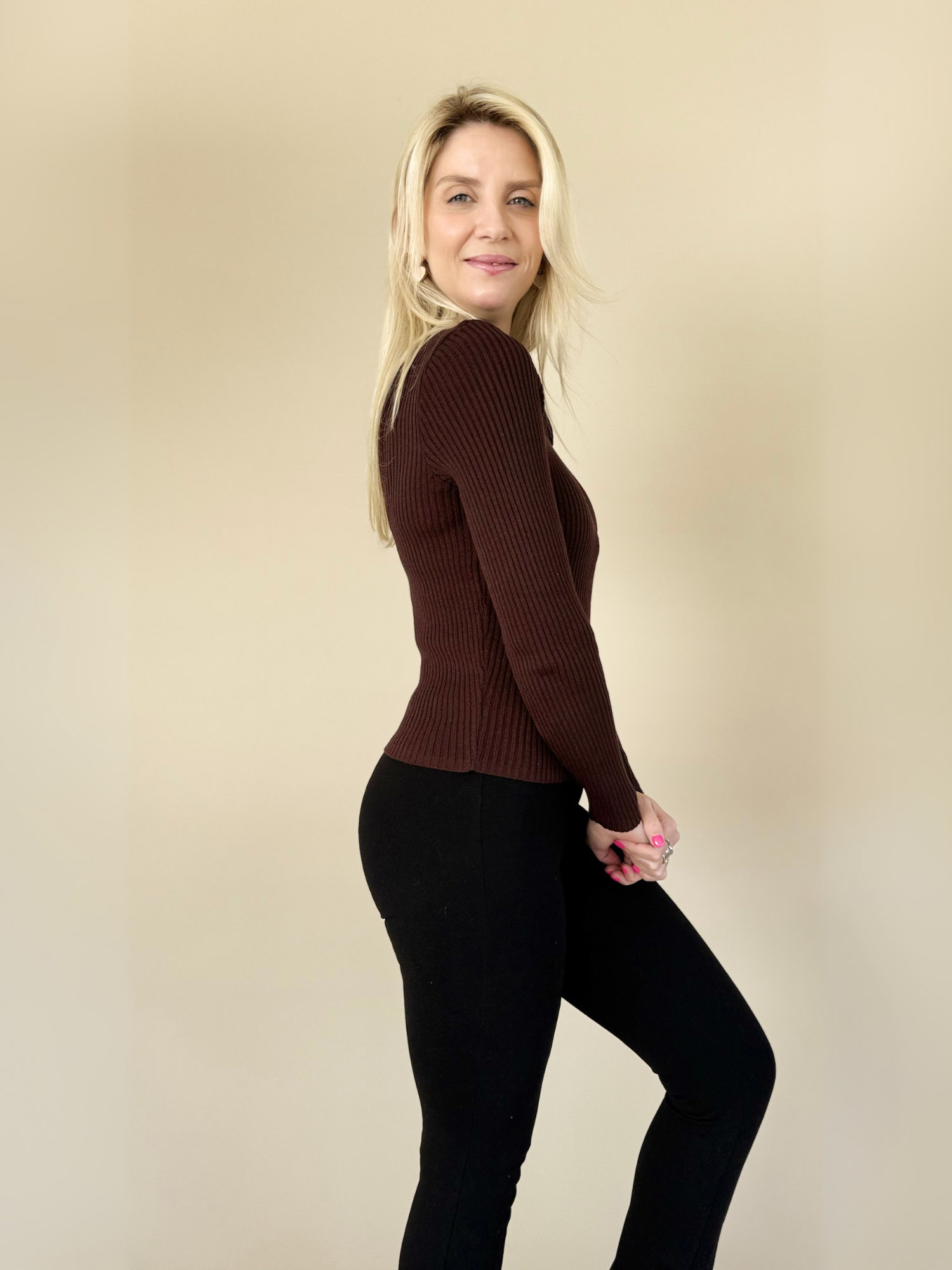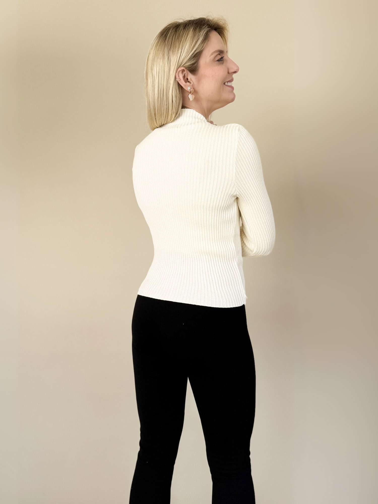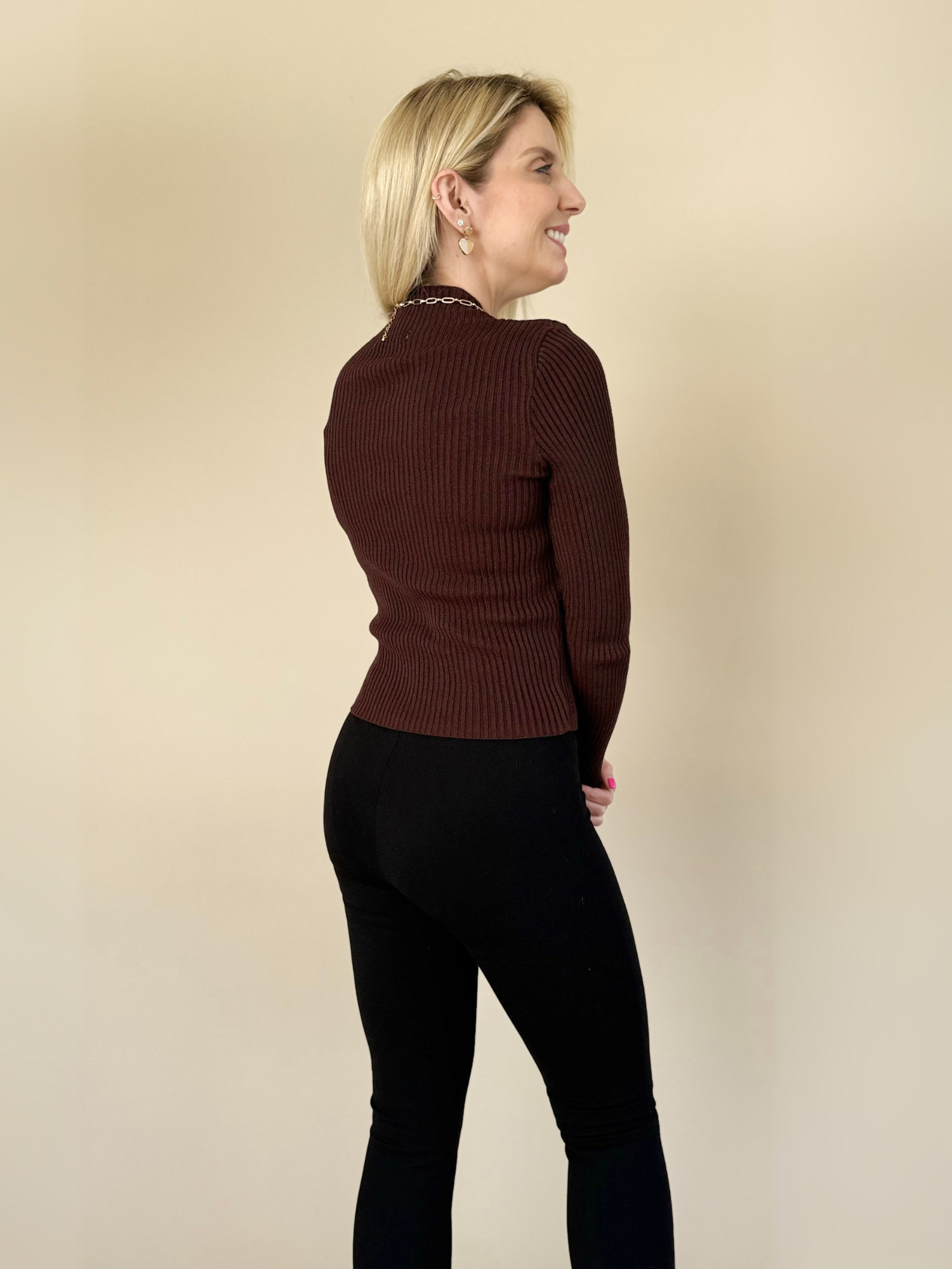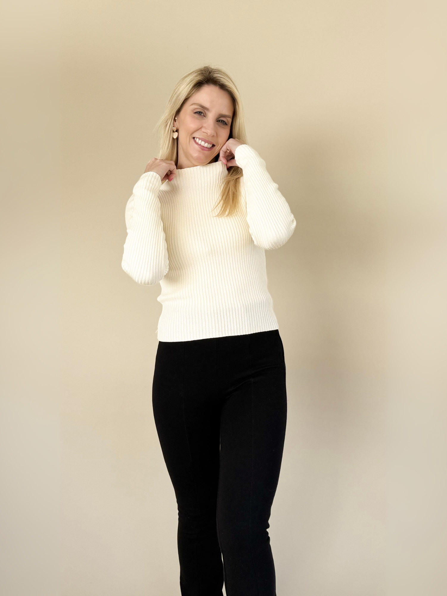 Un clásico con un acabado sofisticado, su tejido acanalado aporta textura y realce a la silueta, mientras que su diseño elasticado ofrece comodidad y un ajuste favorecedor. Las mangas largas equilibran la prenda, convirtiéndola en una pieza esencial que permite multiples combinaciones.