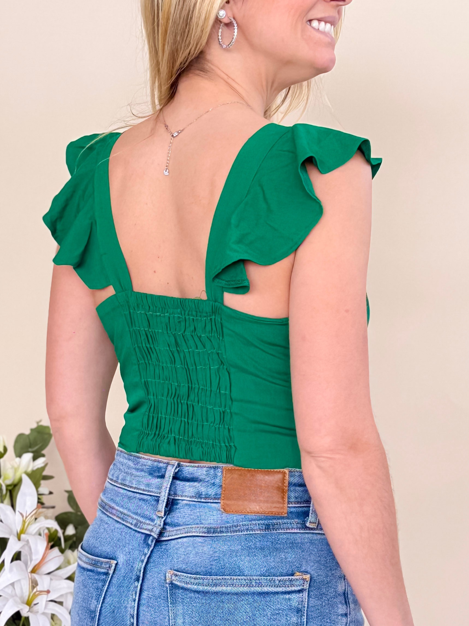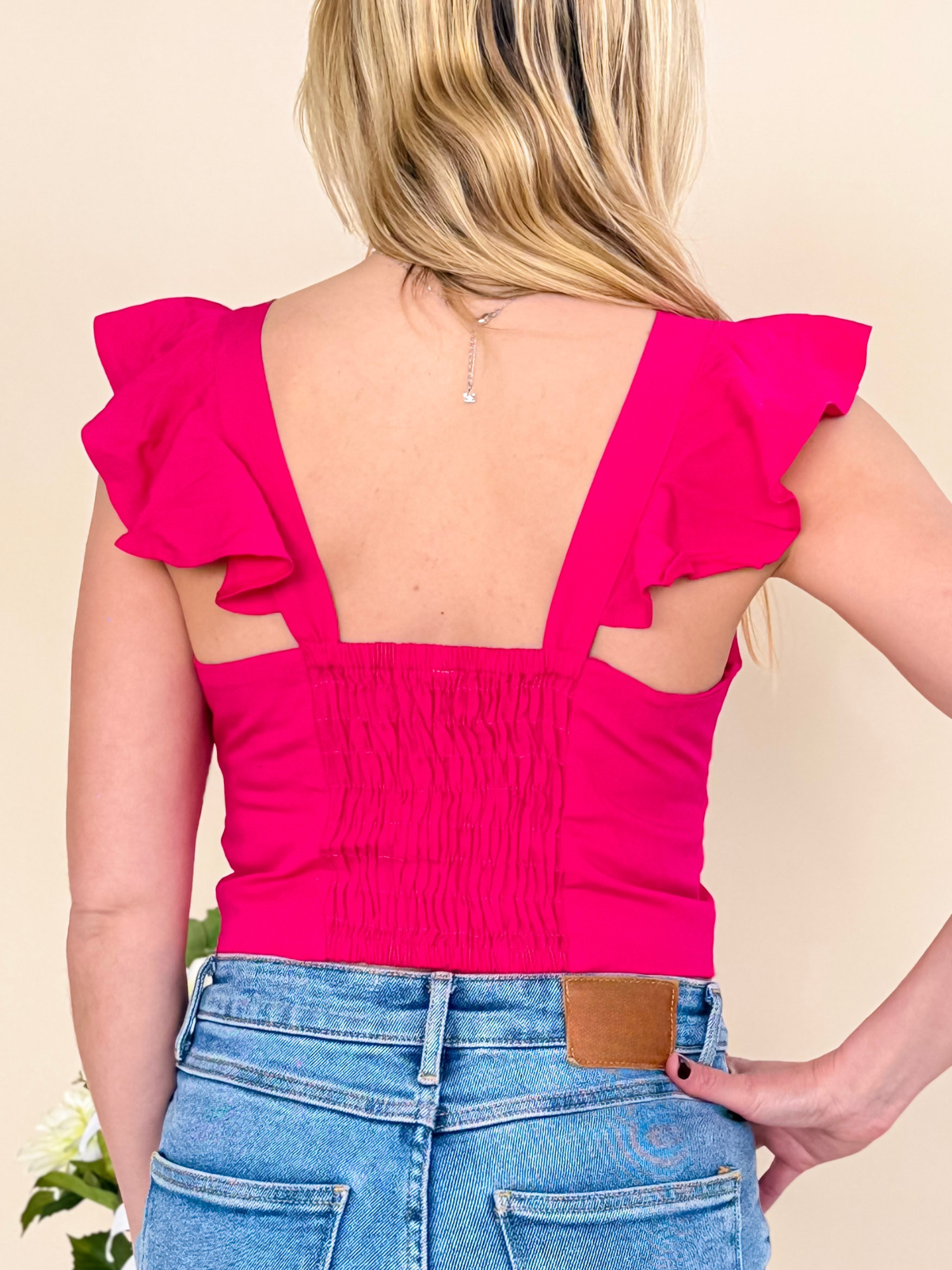 Tip de estilo: Combínalo con una falda corta o pantalón de tiro alto para un look fresco y chic, o con una falda midi y sandalias de tacón para una propuesta más elegante. Los volantes en los tirantes aportan el equilibrio perfecto entre romanticismo y sofisticación, reflejando la esencia de Casale & Co.: elegancia natural, estilo contemporáneo y encanto femenino.
