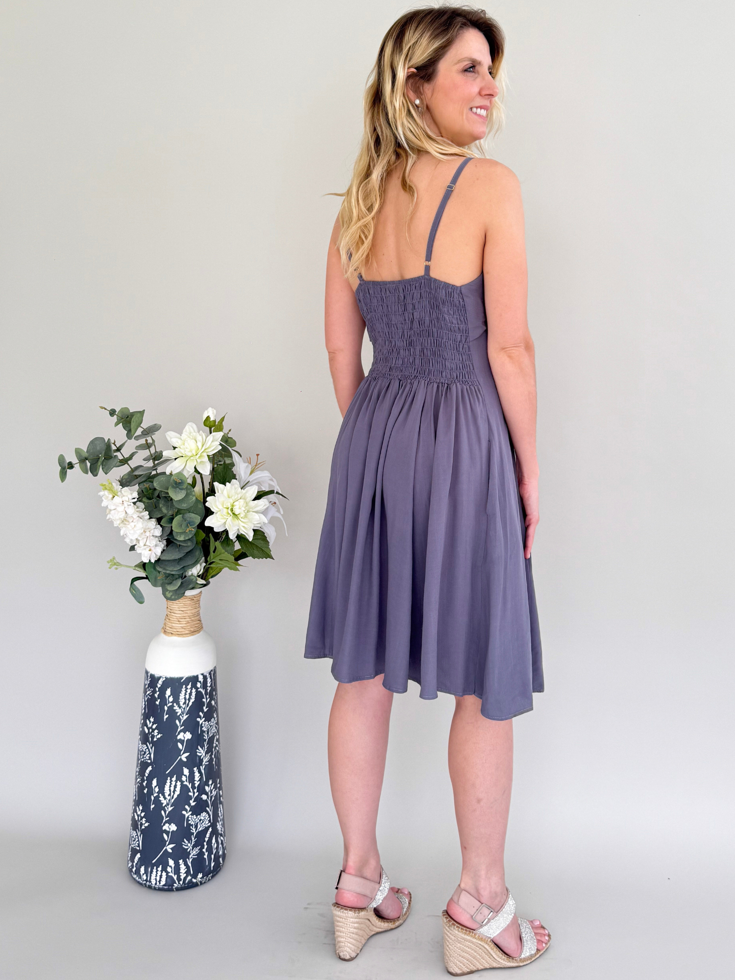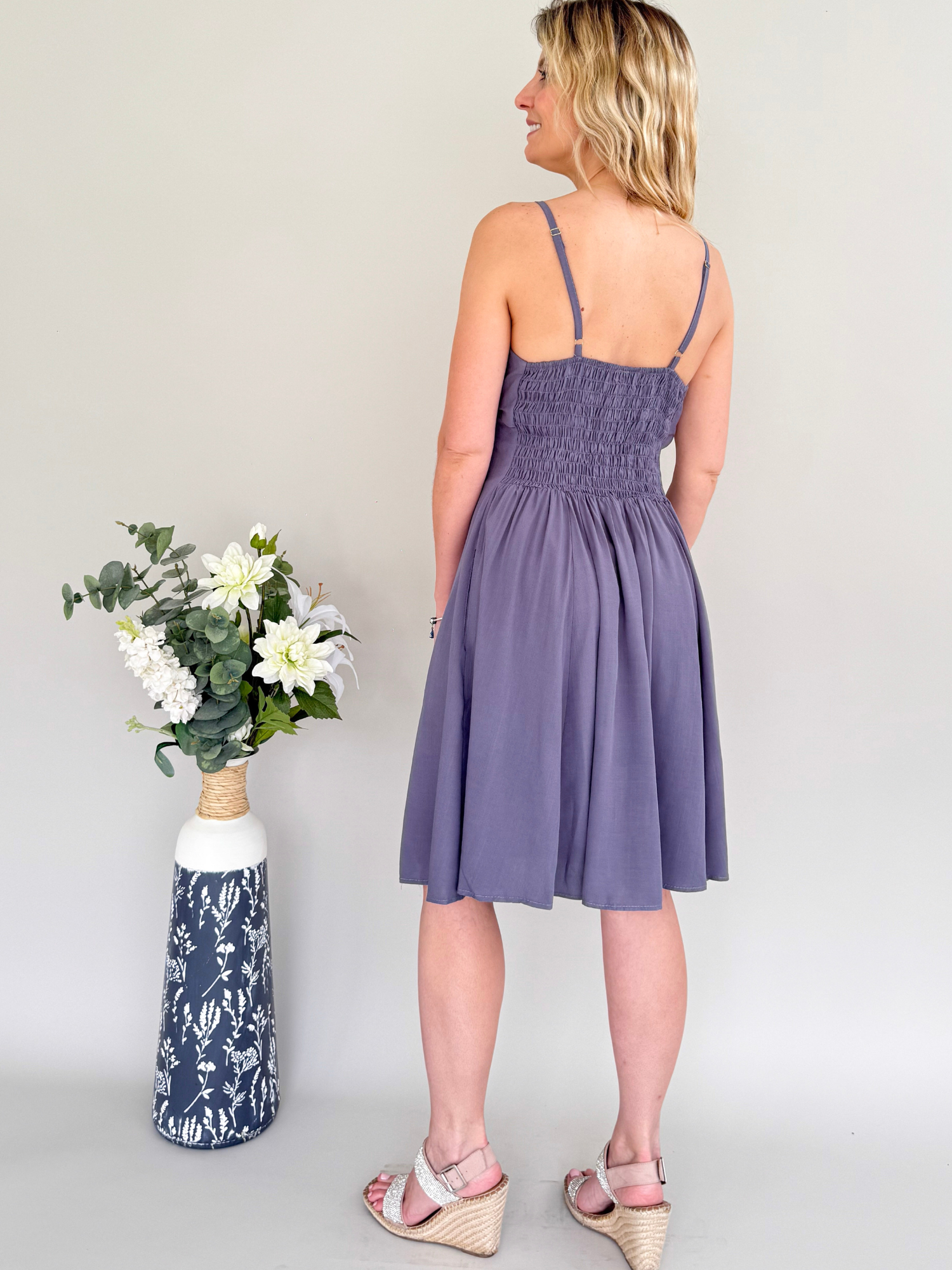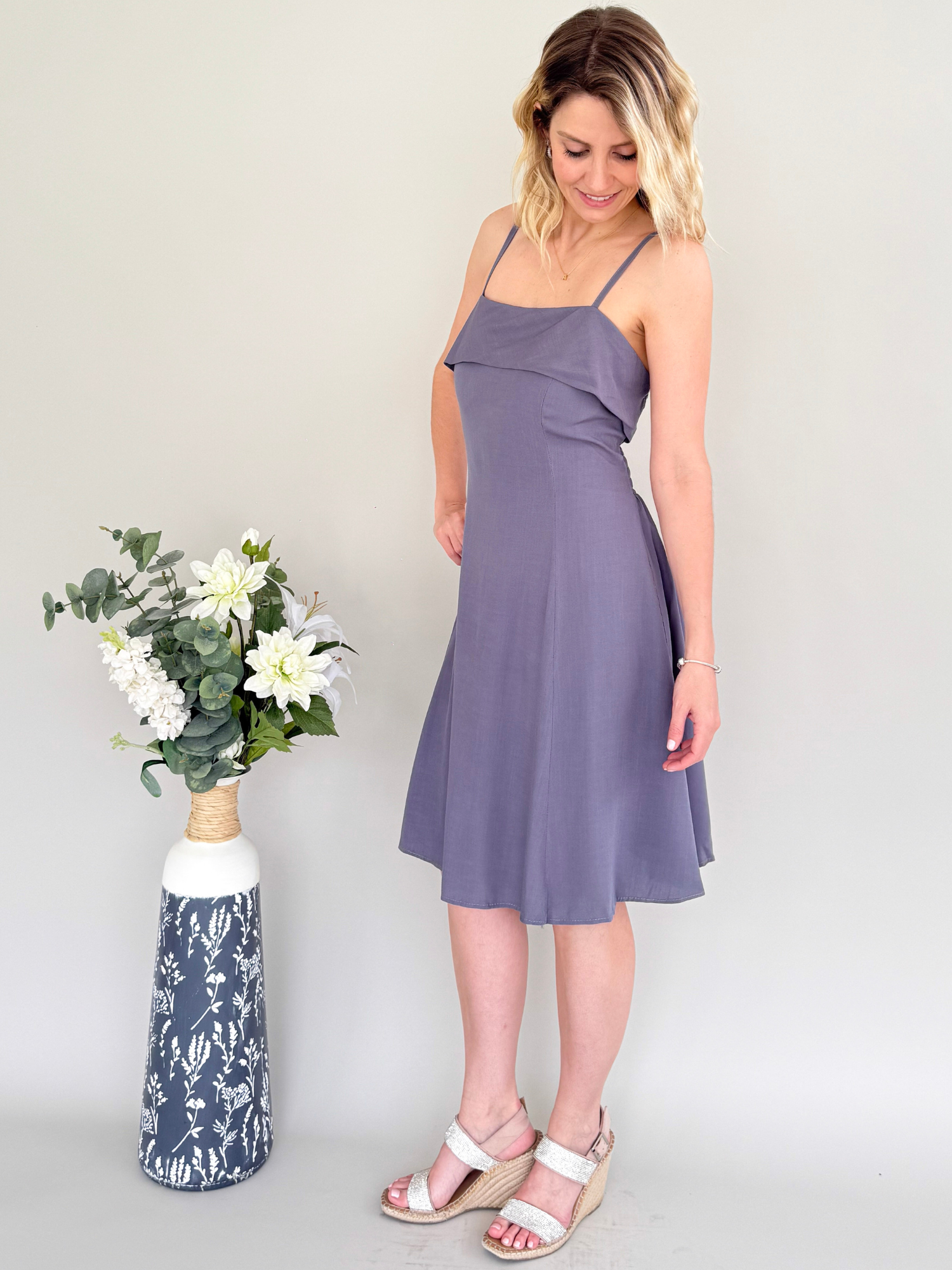 Tip de estilo: Combínalo con sandalias planas o de tacón bajo y accesorios en tonos neutros o dorados para un look veraniego sofisticado. Perfecto para paseos, tardes de verano o escapadas junto al mar, el vestido encarna la esencia de Casale & Co.: elegancia natural, frescura y feminidad sin esfuerzo.